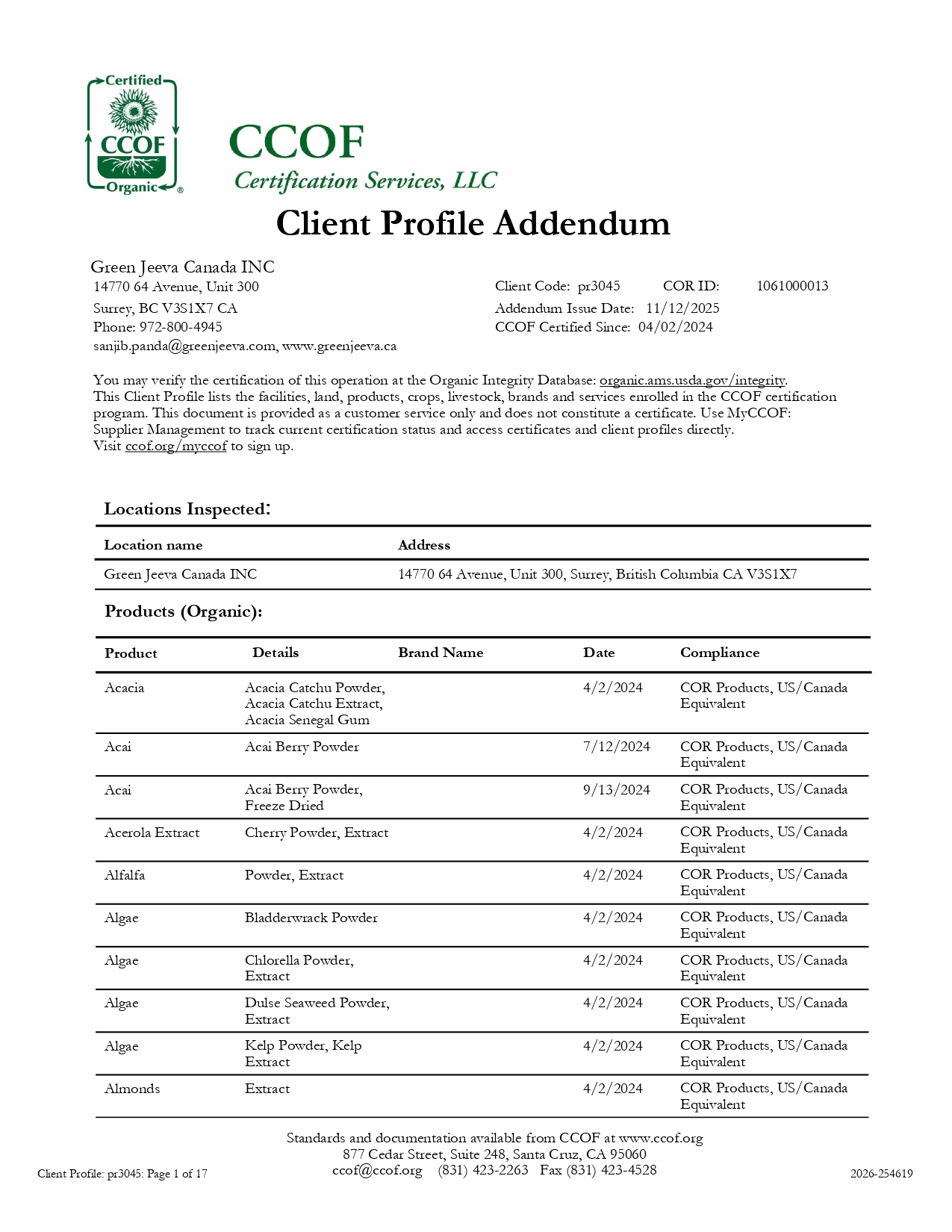 Join us in supporting the organic movement and embracing a healthier, more sustainable future. Trust Green Jeeva Canada Inc. for all your organic ingredient needs, and experience the transformative impact of our COR certification on your formulations.